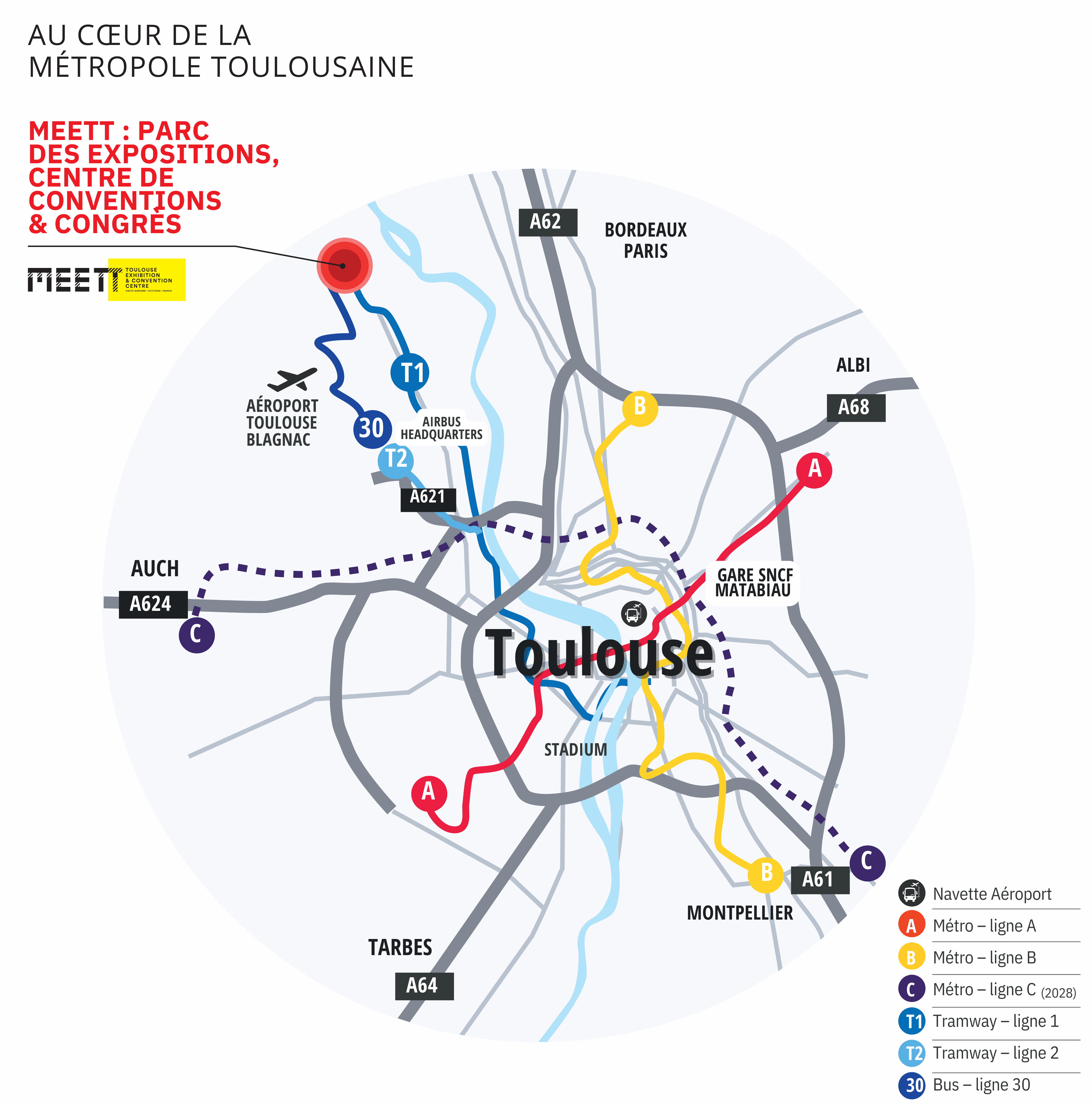 - Accès bus : Ligne 30, arrêt MEETT au pied du Parc des Expositions